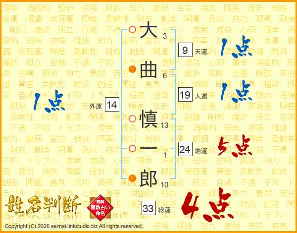 大(3画)曲(6画) 慎(13画)一(1画)郎(10画)