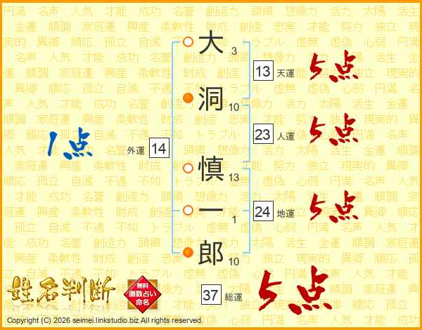 大洞慎一郎さんの総運は37画の5点!