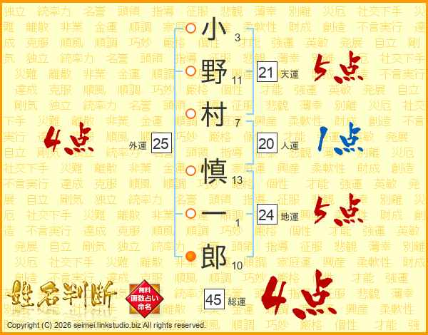 小野村慎一郎さんの総運は45画の4点!