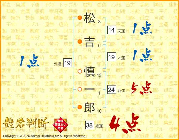 松吉慎一郎さんの総運は38画の4点!