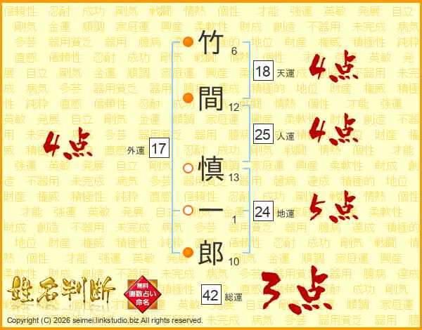 竹間慎一郎さんの総運は42画の3点!