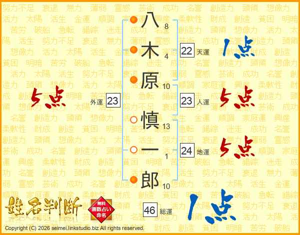 八木原慎一郎さんの人運は23画の5点!