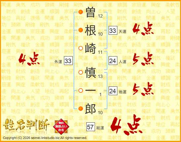 曽根崎慎一郎さんの外運は33画の4点!