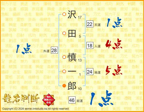 沢田慎一郎さんの総運は46画の1点!