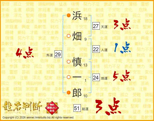 浜畑慎一郎さんの天運は27画の3点!