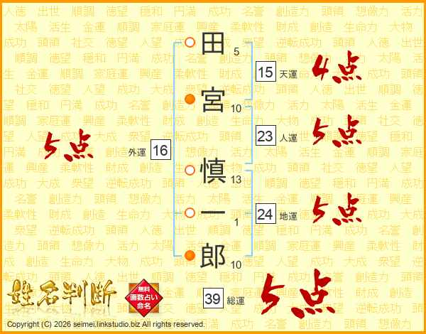 田宮慎一郎さんの総運は39画の5点!