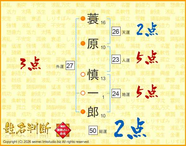 蓑(16画)原(10画) 慎(13画)一(1画)郎(10画)