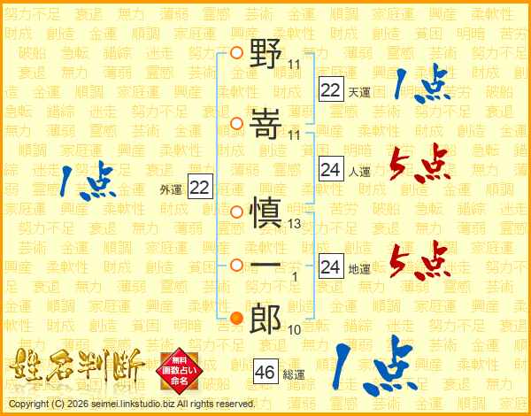野嵜慎一郎さんの総運は46画の1点!