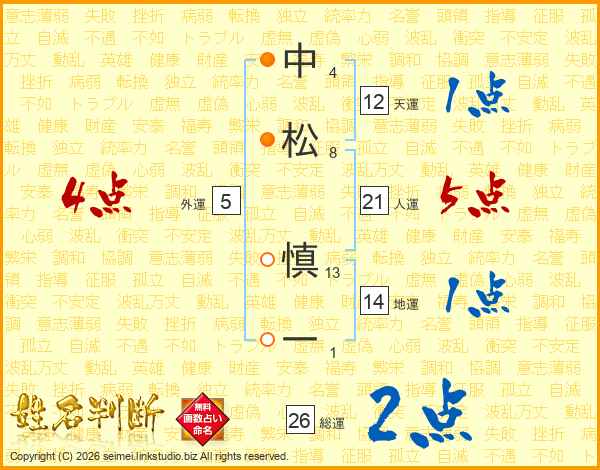 中松慎一さんの総運は26画の2点!