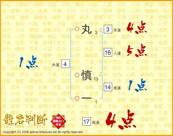 丸慎一さんの総運は17画の4点!