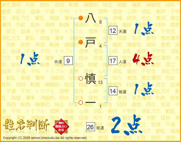 八戸慎一さんの総運は26画の2点!
