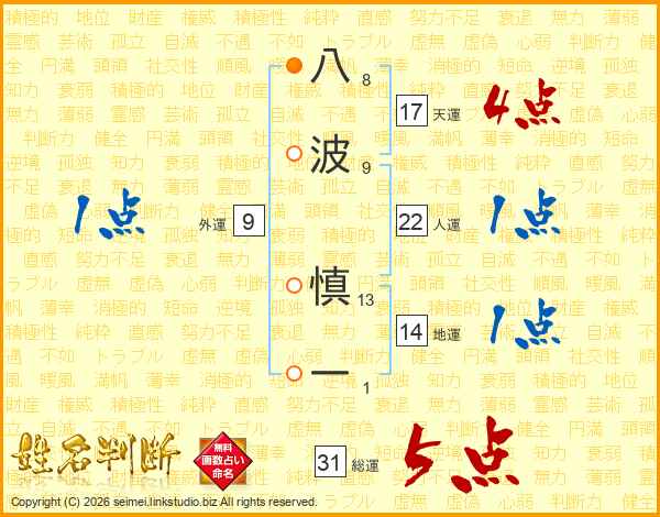 八波慎一さんの総運は31画の5点!