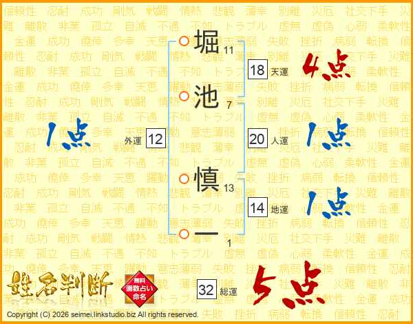 堀池慎一さんの総運は32画の5点!