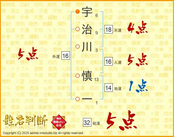 宇治川慎一さんの総運は32画の5点!