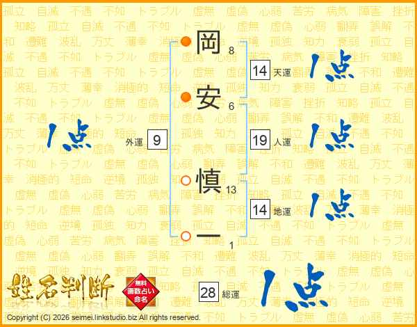 岡安慎一さんの総運は28画の1点!