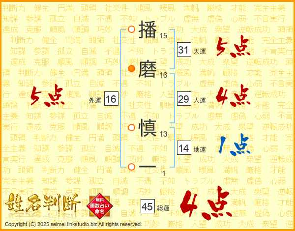 播磨慎一さんの総運は45画の4点!