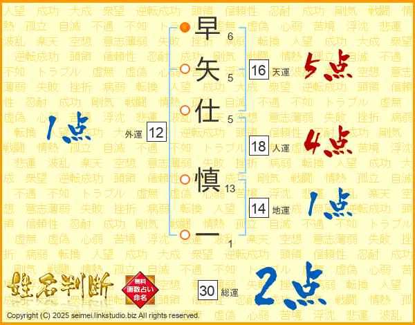 早(6画)矢(5画)仕(5画) 慎(13画)一(1画)