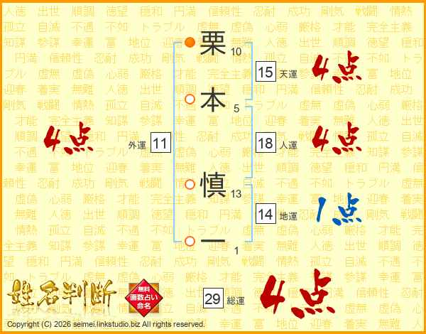 栗本慎一さんの総運は29画の4点!