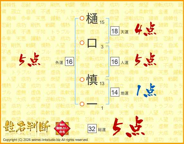 樋口慎一さんの総運は32画の5点!