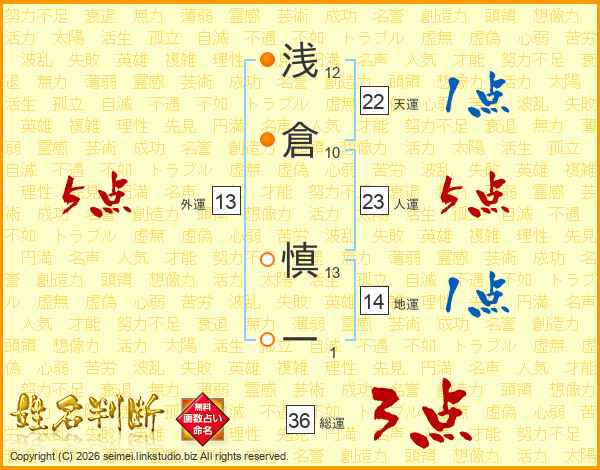 浅倉慎一さんの総運は36画の3点!
