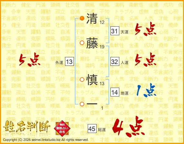 清藤慎一さんの総運は45画の4点!