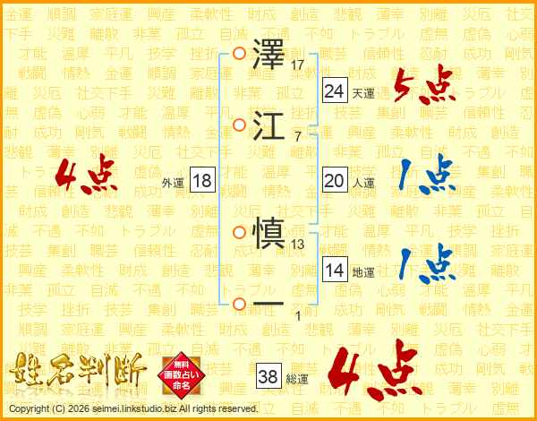 澤江慎一さんの総運は38画の4点!