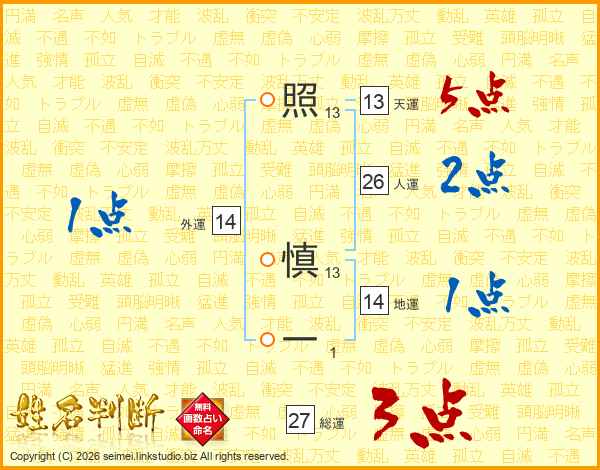 照慎一さんの総運は27画の3点!