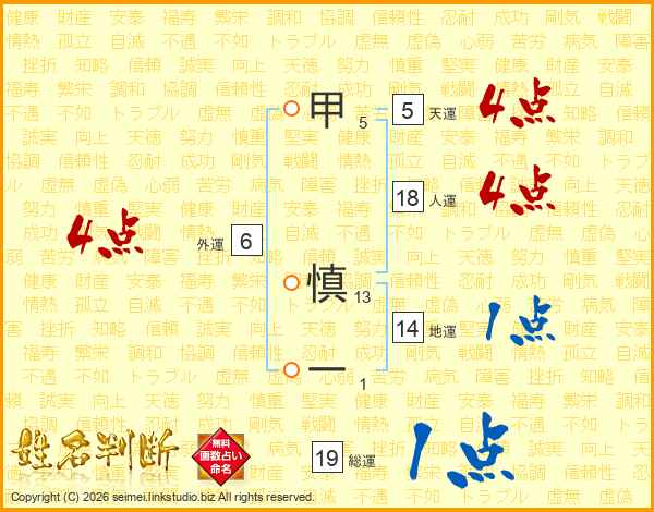 甲慎一さんの総運は19画の1点!