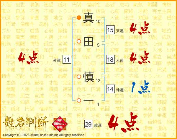 真田慎一さんの総運は29画の4点!