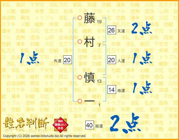 藤村慎一さんの天運は26画の2点!