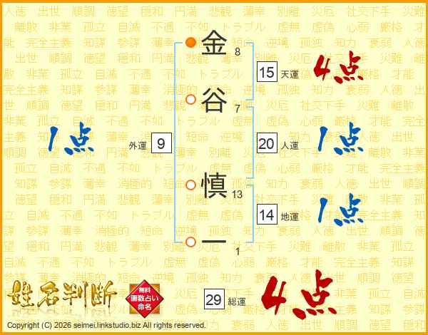 金谷慎一さんの総運は29画の4点!