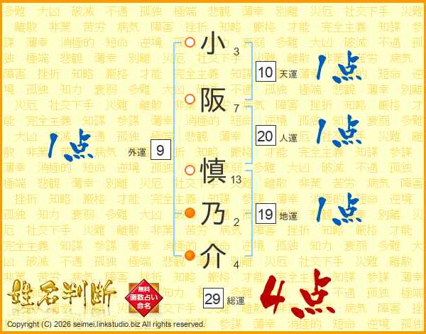 小(3画)阪(7画) 慎(13画)乃(2画)介(4画)
