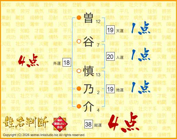 曽谷慎乃介さんの総運は38画の4点!