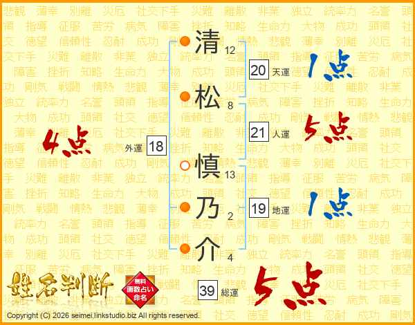清(12画)松(8画) 慎(13画)乃(2画)介(4画)