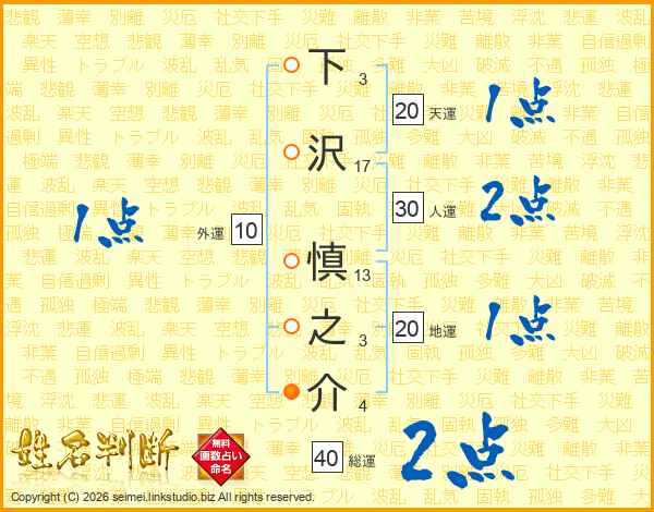 下(3画)沢(17画) 慎(13画)之(3画)介(4画)