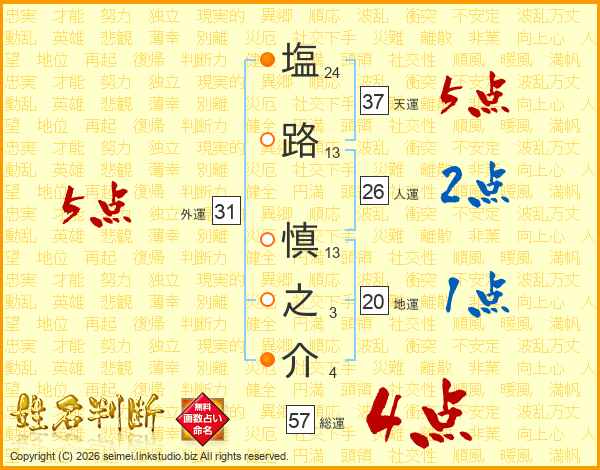 塩(24画)路(13画) 慎(13画)之(3画)介(4画)