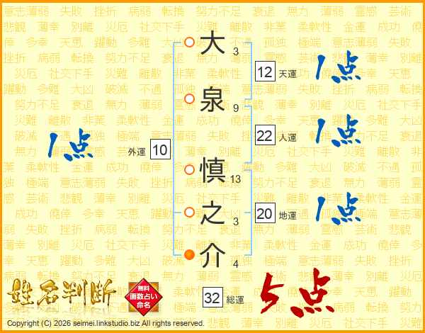 大泉慎之介さんの総運は32画の5点!