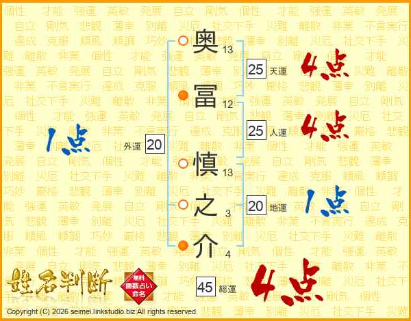 奥冨慎之介さんの総運は45画の4点!