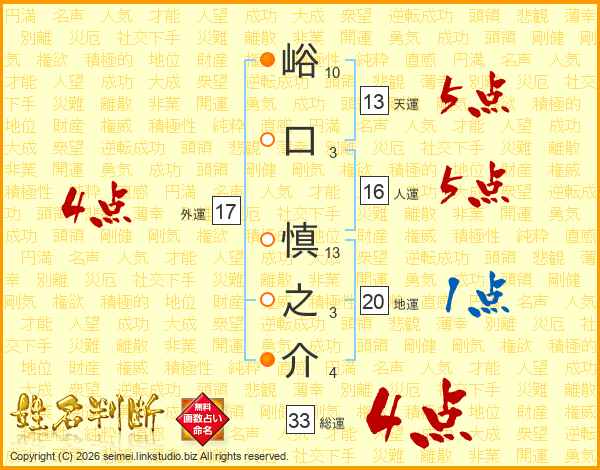 峪口慎之介さんの総運は33画の4点!