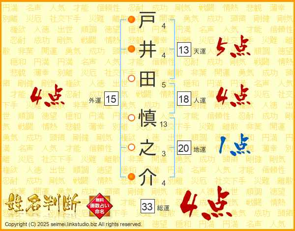 戸(4画)井(4画)田(5画) 慎(13画)之(3画)介(4画)