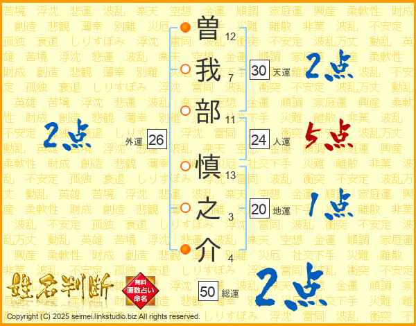 曽(12画)我(7画)部(11画) 慎(13画)之(3画)介(4画)