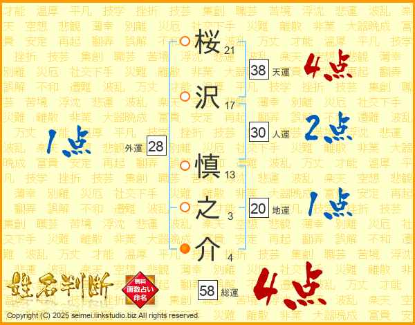 桜(21画)沢(17画) 慎(13画)之(3画)介(4画)