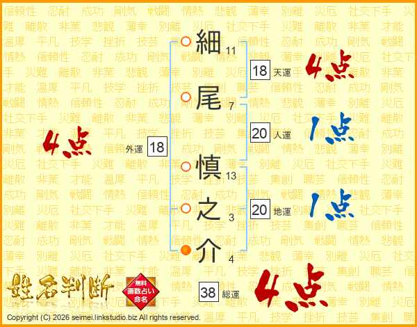 細尾慎之介さんの総運は38画の4点!