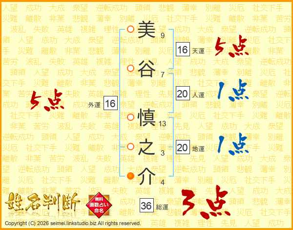 美(9画)谷(7画) 慎(13画)之(3画)介(4画)