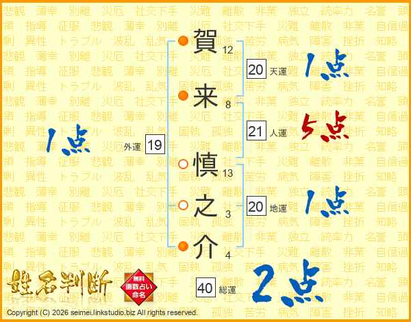 賀(12画)来(8画) 慎(13画)之(3画)介(4画)