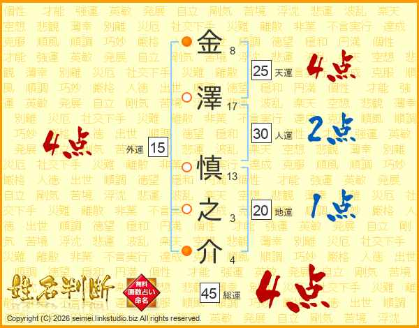 金澤慎之介さんの総運は45画の4点!