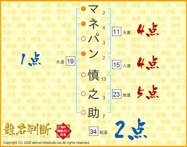 マネパン慎之助さんの総運は34画の2点!