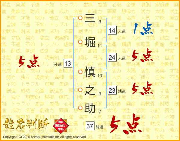 三堀慎之助さんの総運は37画の5点!