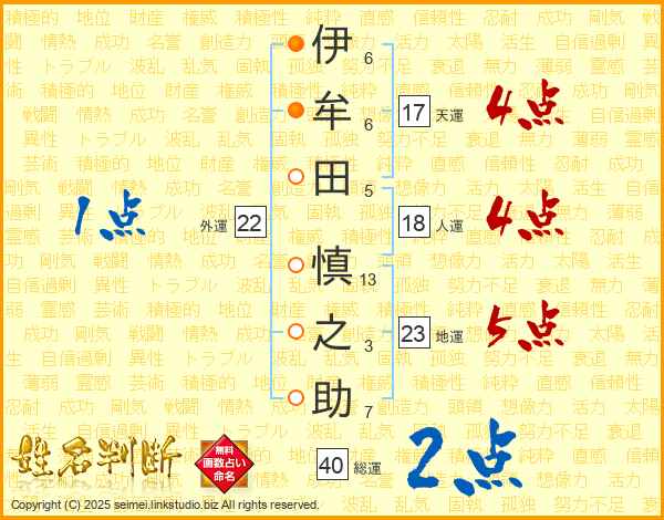伊牟田慎之助さんの総運は40画の2点!