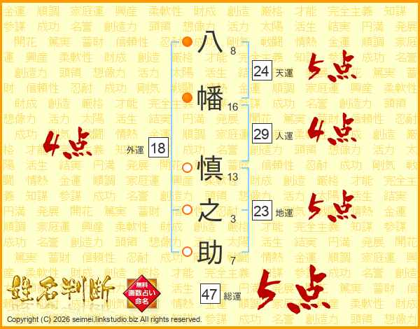 八幡慎之助さんの総運は47画の5点!